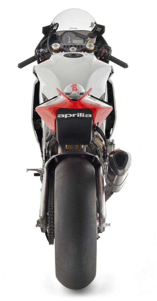 Zanimljivo je primjetiti da se motocikl isporučuje s međuosovinskim razmakon podešenim na 1.440 mm što je 20 mm više od srijskog modela RSV4 Factory, dok je i visina sjedala povećana na 880 mm (845 mm RSV4 Factroy). Jasno je da je sve ove parametre moguće podešavati, ali tvorničke postavke će nekima biti interesantne. Spremnik goriva prima 17 litara, kroz natjecateljski poklopac.