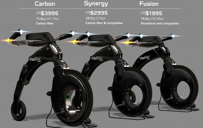 Iako postoji već nekoliko godina, YikeBike još uvijek više djeluje kao rekvizit iz SF filmova nego kao prometalo po mjeri urbanog čovjeka. Šuplji prednji kotač promjera 20 cola, stražnji kotač od 8 cola, fleksibilno sjedalo na upravljaču, LED svjetla, atraktivan dizajn i obilata upotreba karbona daju ovom elektrociklu poželjni štih vozila budućnosti, dok svakodnevnoj praktičnosti pridonosi mogućnost da se u manje u pola minuta transformira u kofer i tako pripremi za ručni transport.