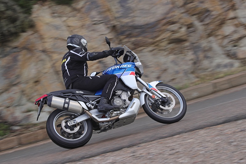 Tuareg je treći Aprilijin model pokretan radnim dvocilindričnim agregatom od 660 ccm, koji je za ovu novu sredinu prigušen na 80 KS kako bi se dobilo linearnije razvijanje snage. Oko njega je razvijen čelični okvir, na čijim krajevima se onda nalazi podesivi Kayaba ovjes, hoda čak 240 mm.