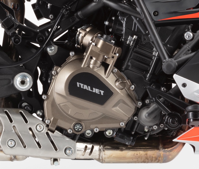 Italjet Dragster 459 Twin Smart Shift. Iznad poklopca spojke se vidi aktuator za aktivaciju